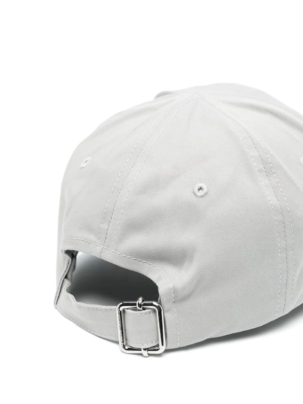 Gris claro, algodón stretch, logo bordado en la parte delantera, diseño con cinco paneles, visera curva y correa ajustable en la parte posterior.