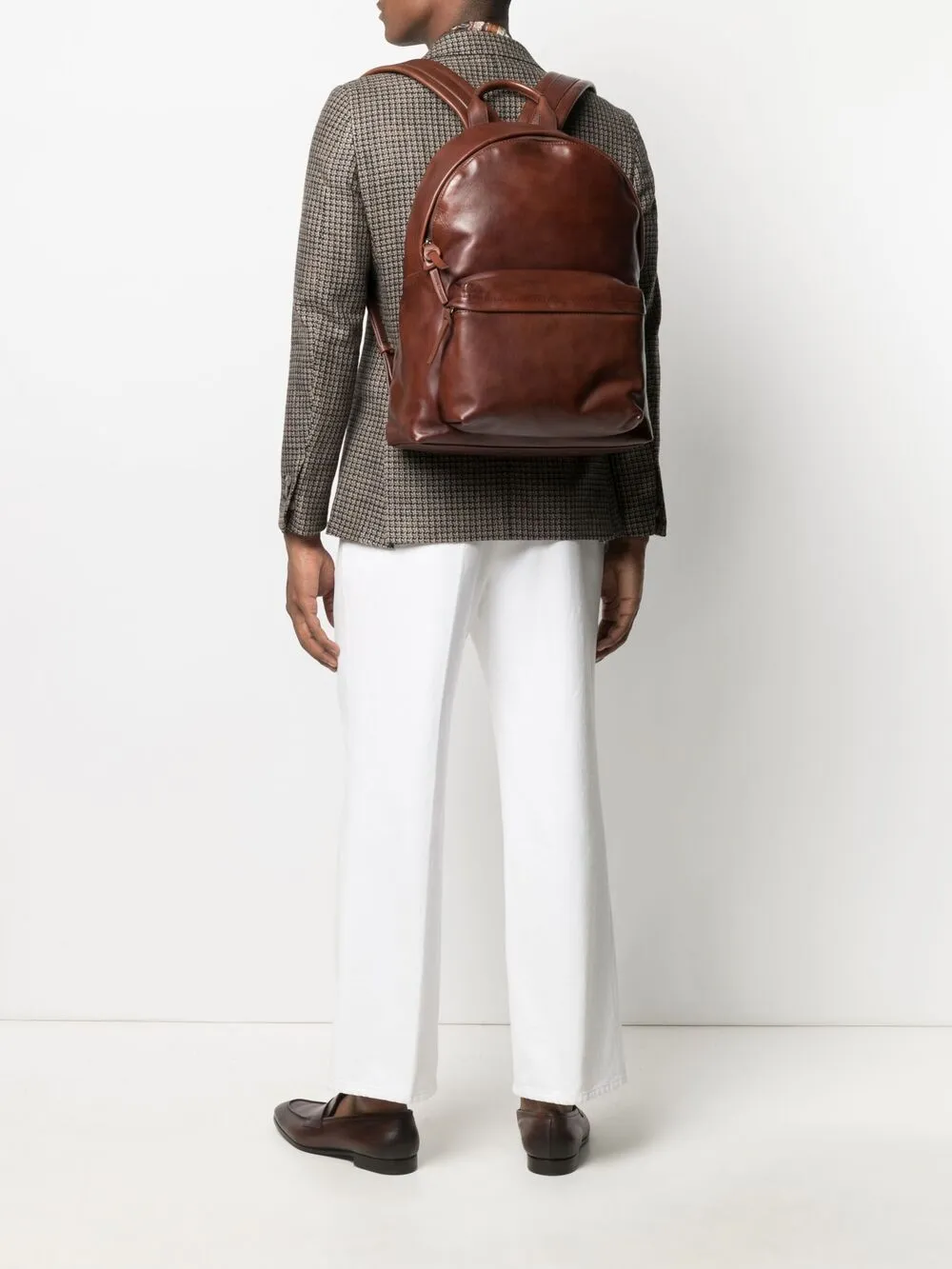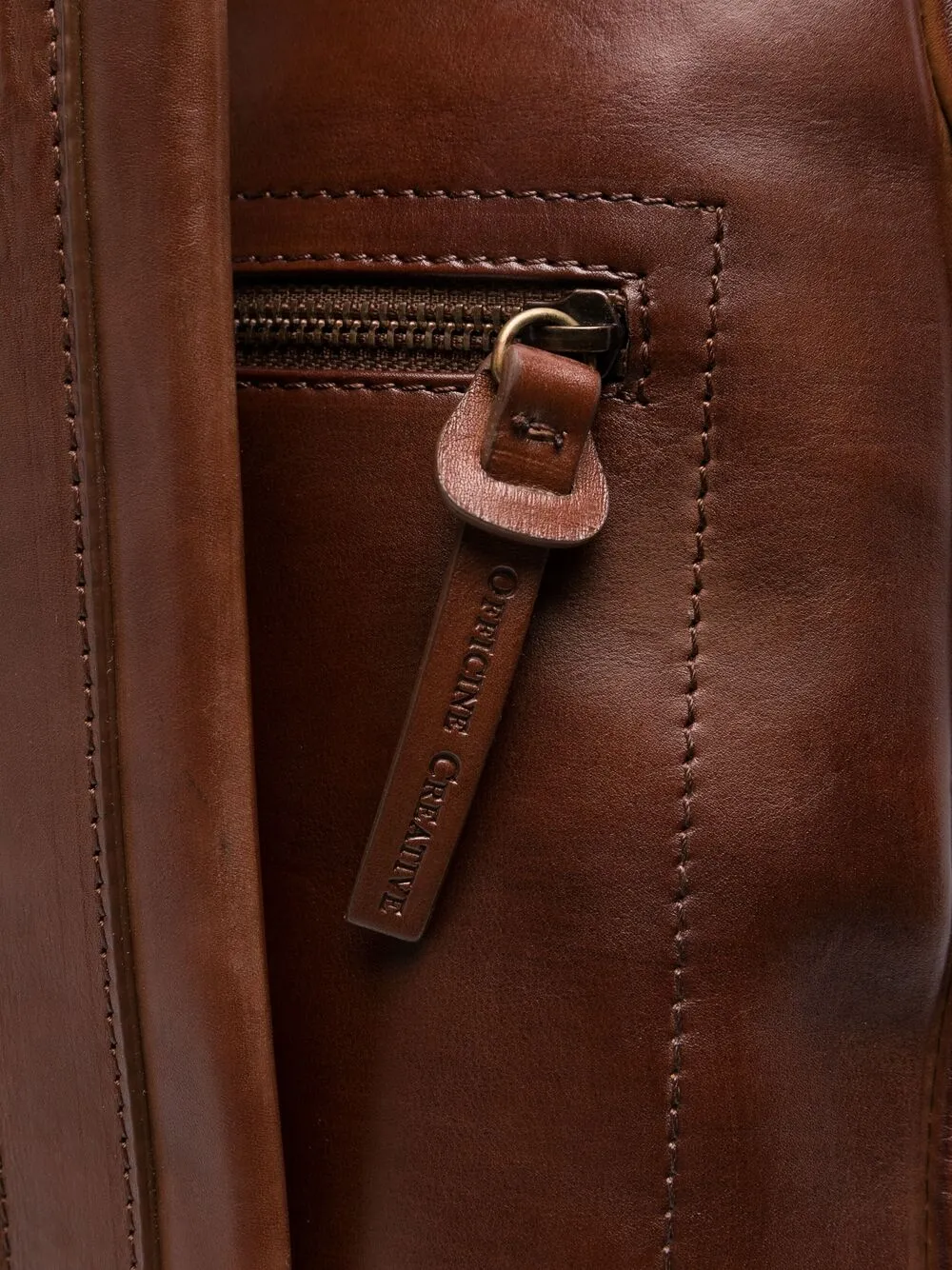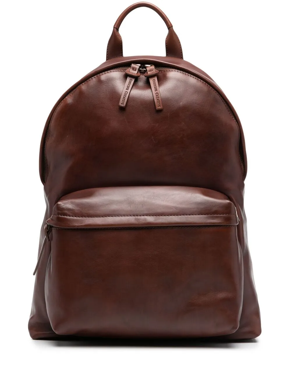 Mochila OC en cuero de color color marrón de OFFICINE CREATIVE con efecto envejecido, asa en la parte superior, correas de hombro ajustables, bolsillo con cremallera en la parte posterior, compartimento frontal con cremallera, compartimento principal, bolsillo interno, bolsillo interno con cremallera y cierre con cremallera en el tope.