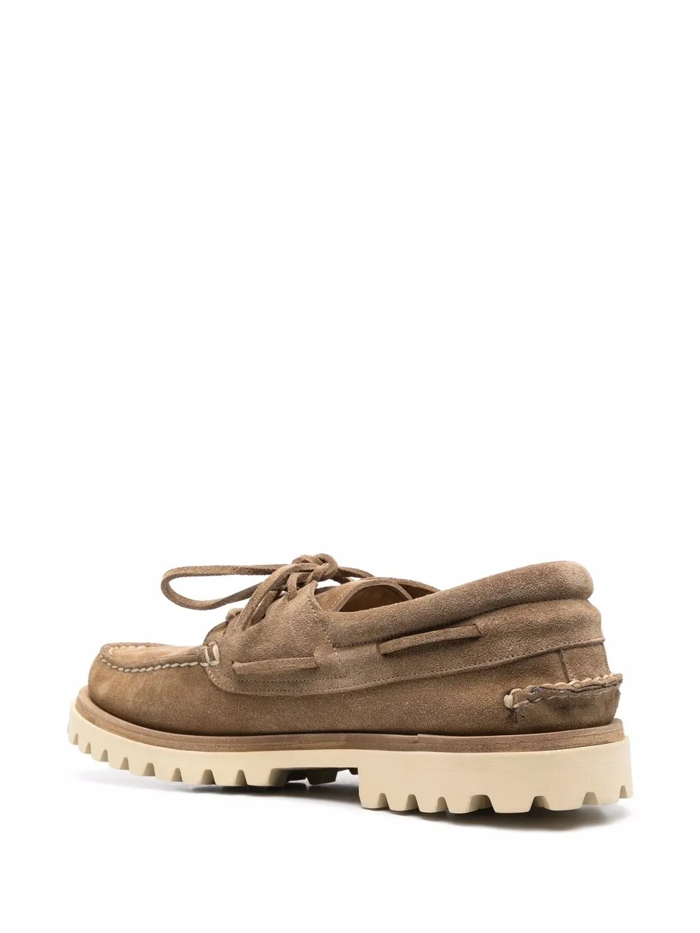 Zapatos náuticos con suela dentada de OFFICINE CREATIVE con costuras del mismo tono, puntera redonda, cierre con cordones en la parte delantera, plantilla con logo, suela dentada de goma, marrón y cuero.