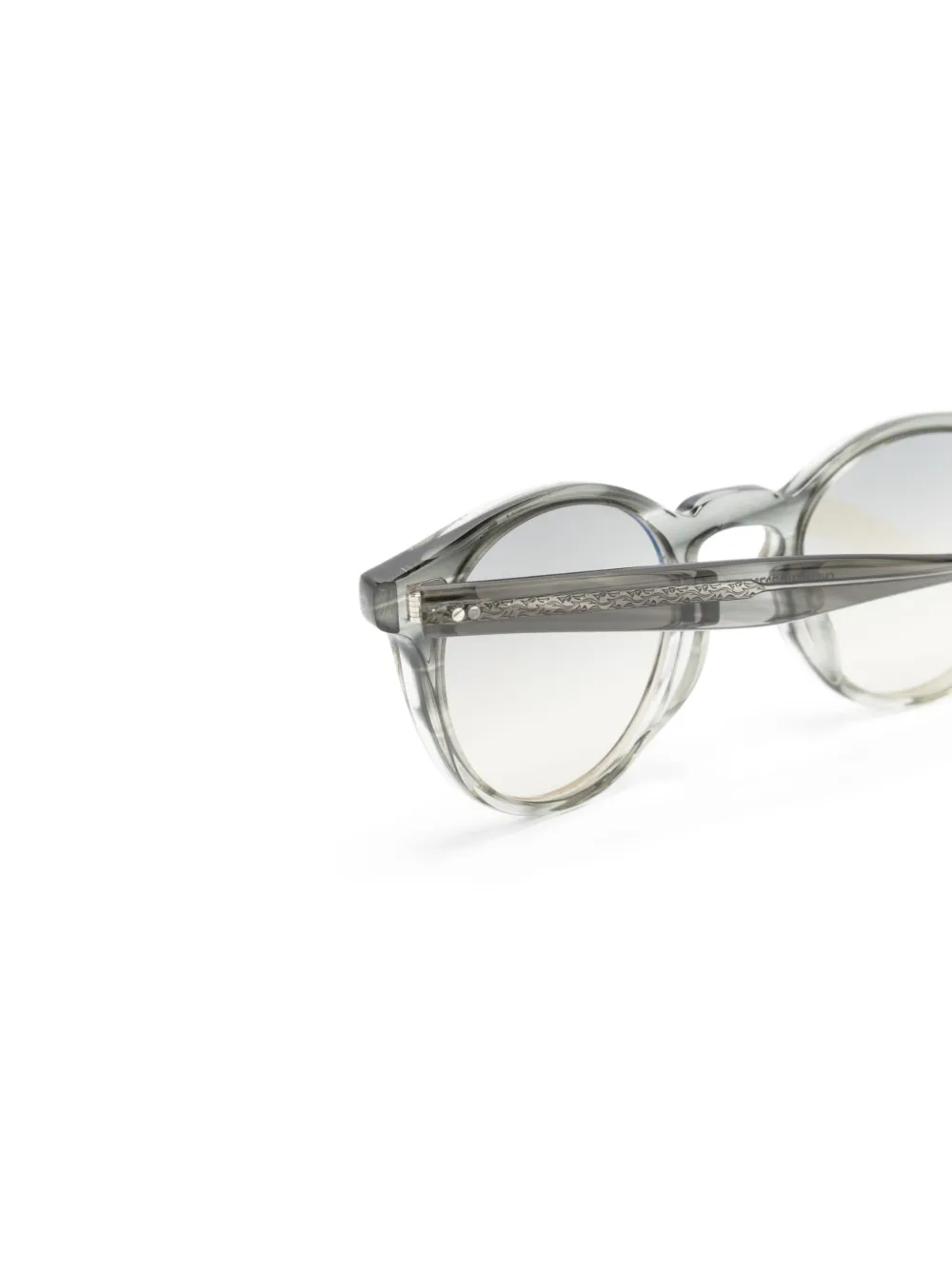 Gris claro, acetato, lentes degradadas, montura redonda, montura translúcida y detalle grabado. Estas gafas vienen con un estuche de protección..