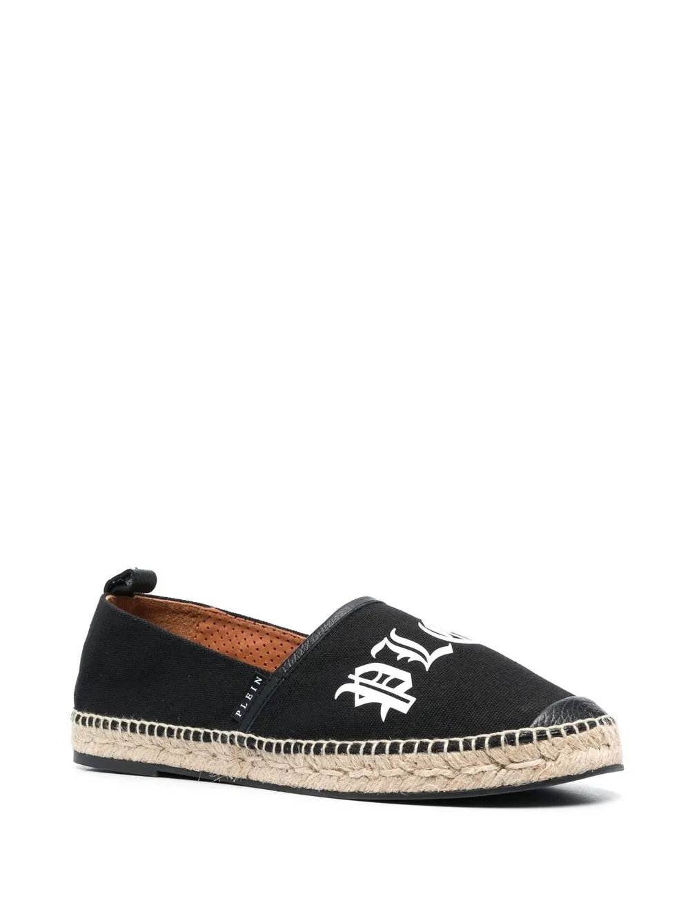 Estampado del logo en la parte delantera, lengüeta en la parte posterior, suela de rafia trenzada, suela plana y plantilla con logo.