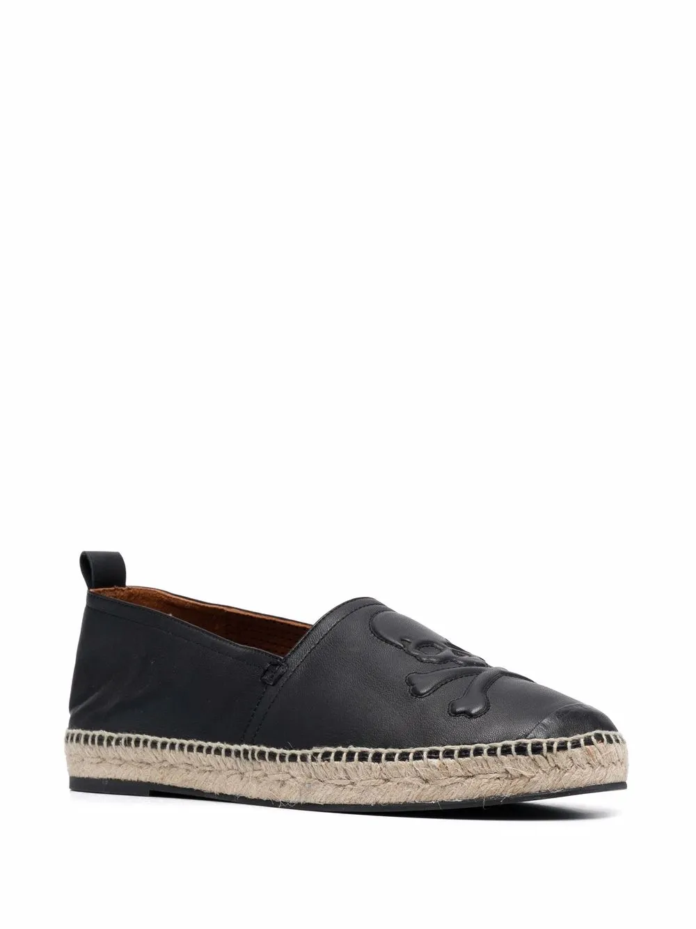 Aplique de calavera, detalle en relieve, lengüeta en la parte posterior, detalle de cuerda y suela plana. Material: cuero.