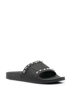 Negro y blanco, piel de becerro, estampado de calavera, placa del logo en tono plateado, cierre con cremallera en el tope, correa de hombro ajustable y compartimento principal.