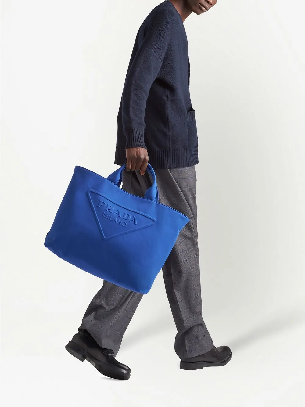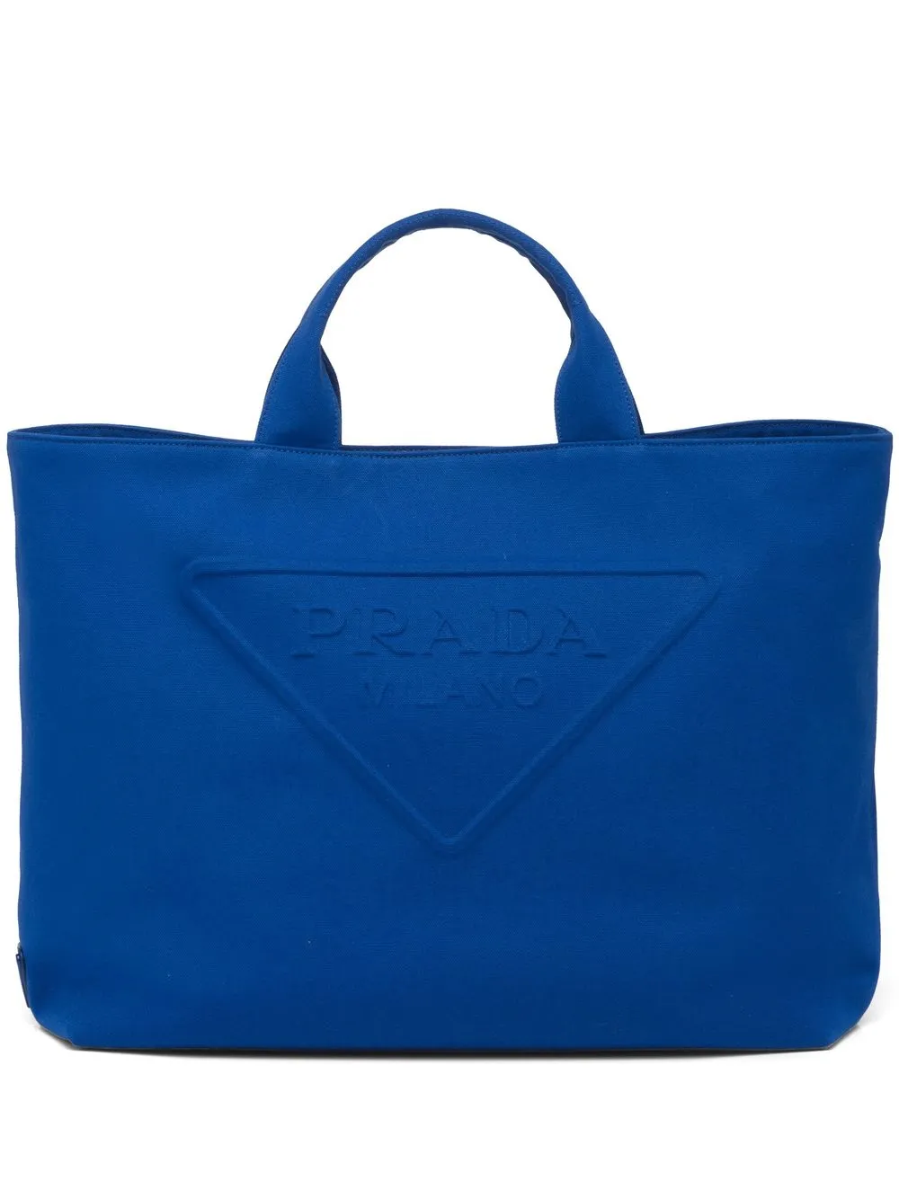 Con Prada es imposible equivocarse. Todo su catálogo está lleno de obras de arte práctica y de gran calidad. Este bolso shopper de color azul presenta una correa para el hombro y dos cómodas asas para el transporte.