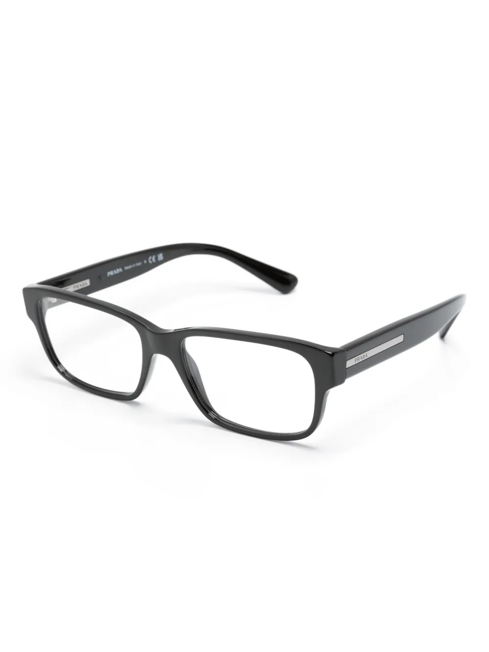 Negro, acetato, acabado en tono plateado, logo estampado en la patilla, montura rectangular, lentes transparentes, patillas rectas y puntas curvadas. Por favor, ten en cuenta que las gafas que compras en FARFETCH no tienen graduación.. Estas gafas vienen con un estuche de protección..