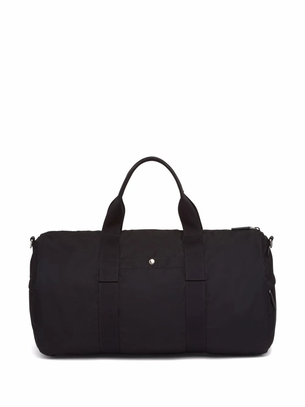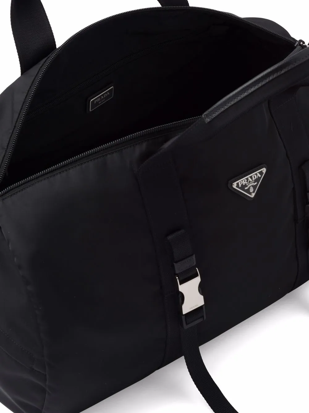 Logo triangular, cierre con cremallera en el tope, cierre con hebilla, correa ajustable y removible para el hombro, dos asas redondas en la parte superior y compartimento principal.