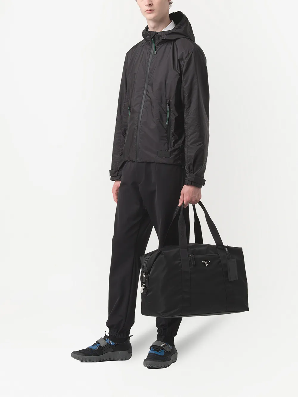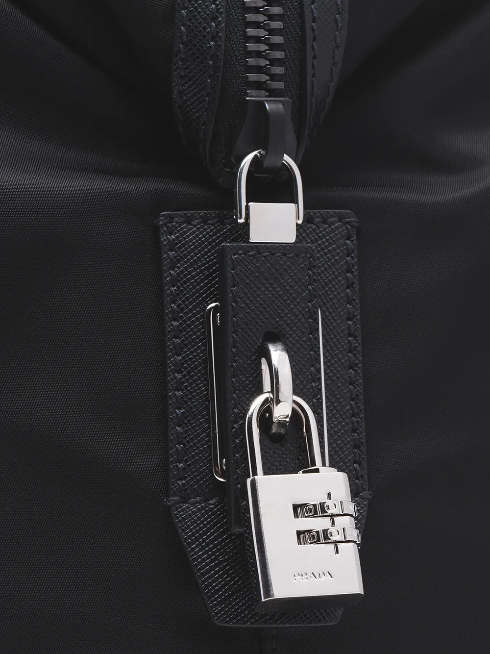 Logo triangular esmaltado, etiqueta de cuero, cierre con candado, cierre con cremallera en el tope, dos asas redondas en la parte superior y bolsillo con cremallera en la parte delantera. POSITIVELY CONSCIOUS: al menos el 50% del material principal de este producto cumple con nuestros criterios conscious. Este producto está elaborado con un material que puede ser orgánico, reciclado, suprarreciclado o reconocido por ser una mejor opción para el planeta (como el lino, el ramio, TENCEL™, etc.).