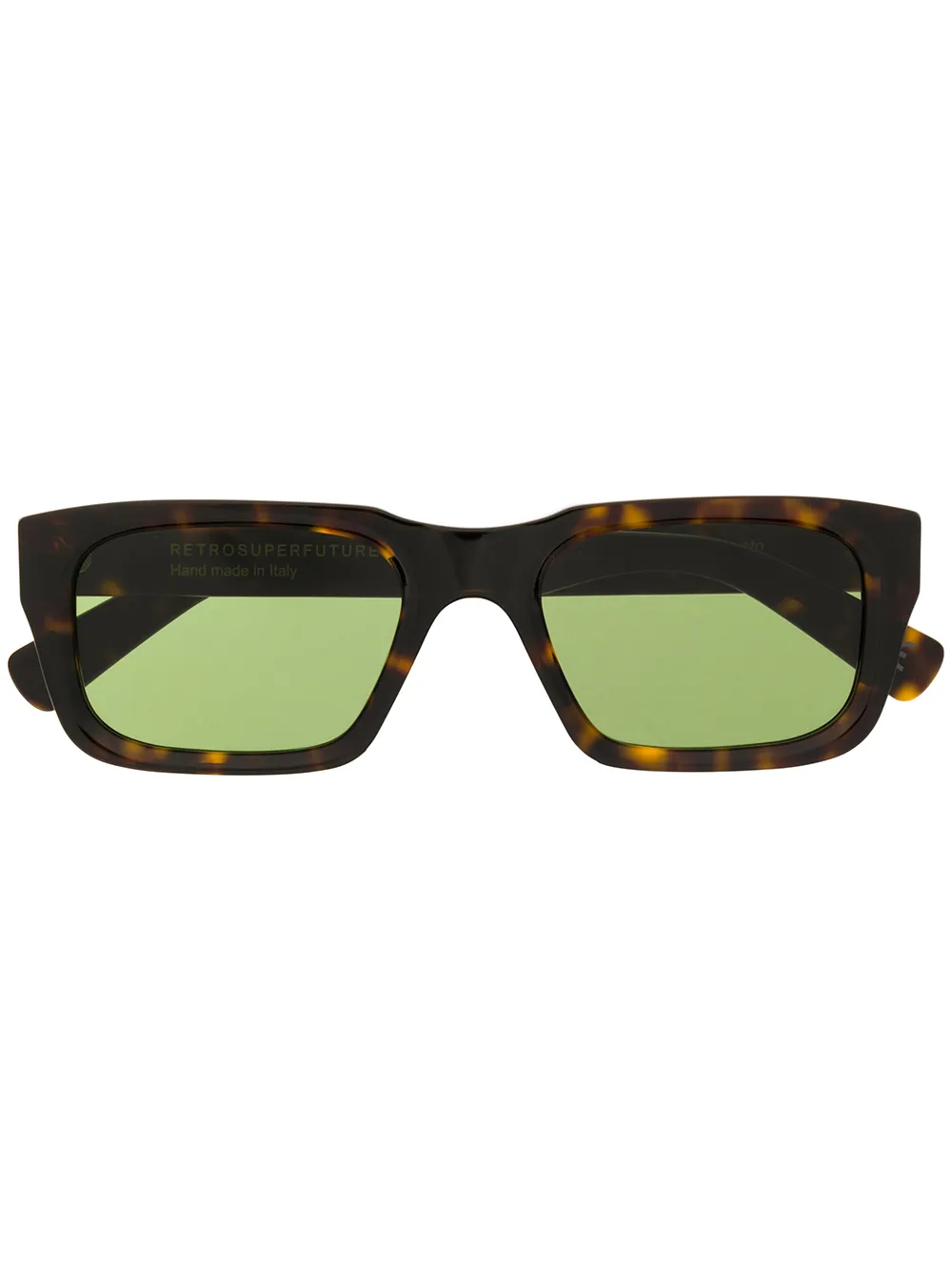 Gafas de sol Augusto de color marrón de Retrosuperfuture con lentes de color, logo grabado, patillas rectas con puntas curvadas y efecto de carey. Este artículo viene con un estuche de protección.