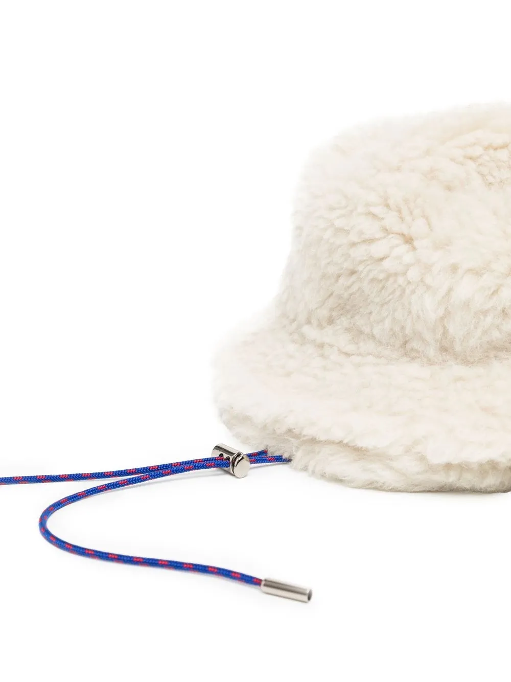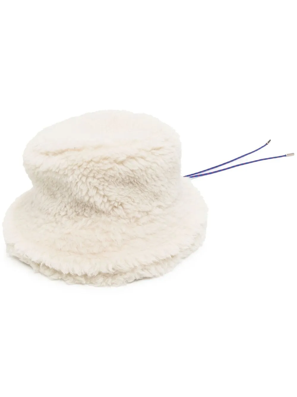 textured wool bucket hat from sacai featuring off-white, wool, textured finish, curved wide brim and drawstring neck.