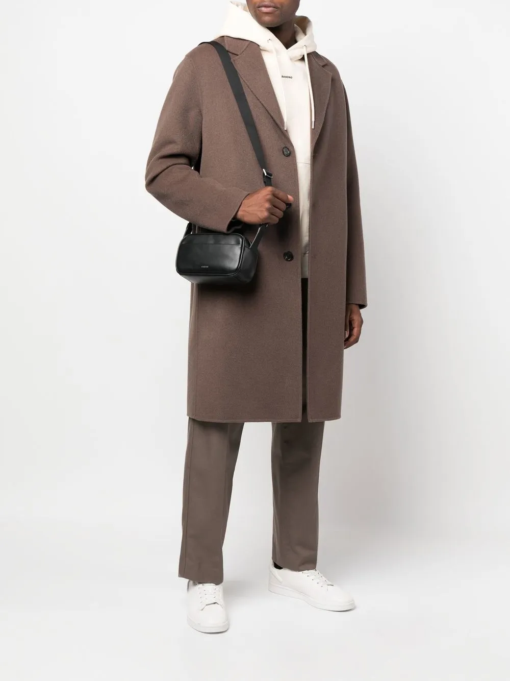Cierre con cremallera en el tope, parche del logo en el interior y correa de hombro ajustable.