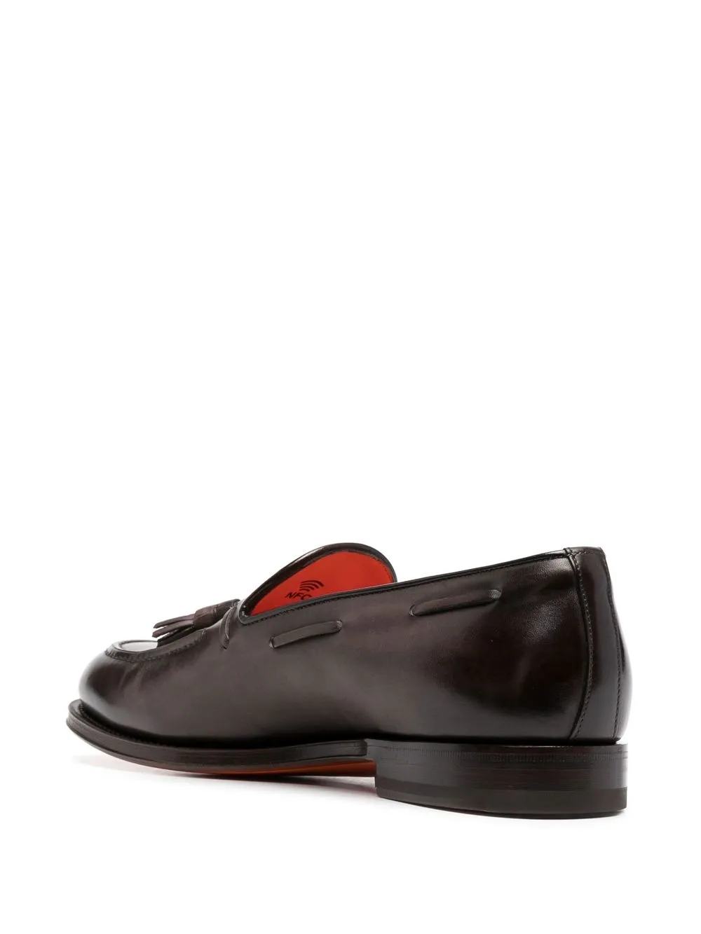 Marrón, cuero, detalle de borla, puntera de almendra y plantilla de piel con logo.