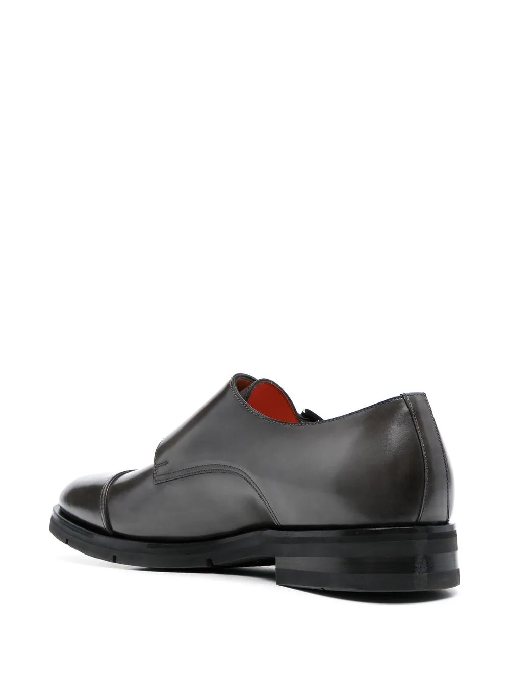 Gris carboncillo, piel de becerro, puntera en punta, cierre con hebilla doble, plantilla con logo y tacón bajo.