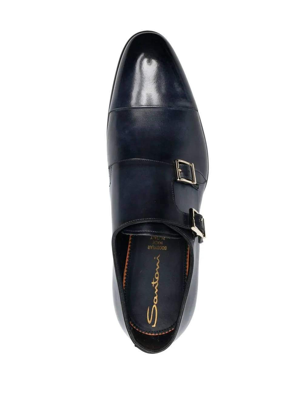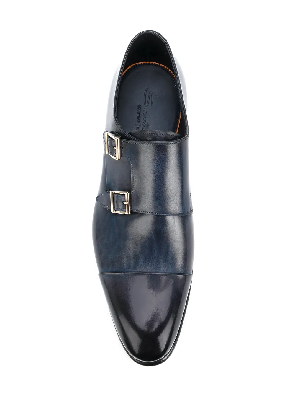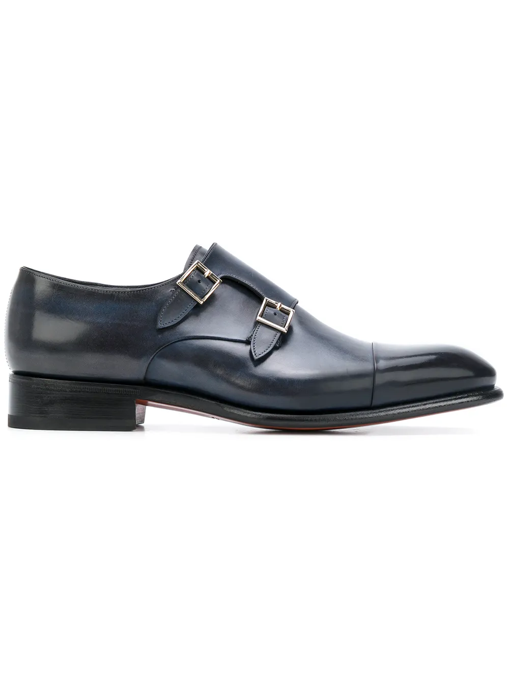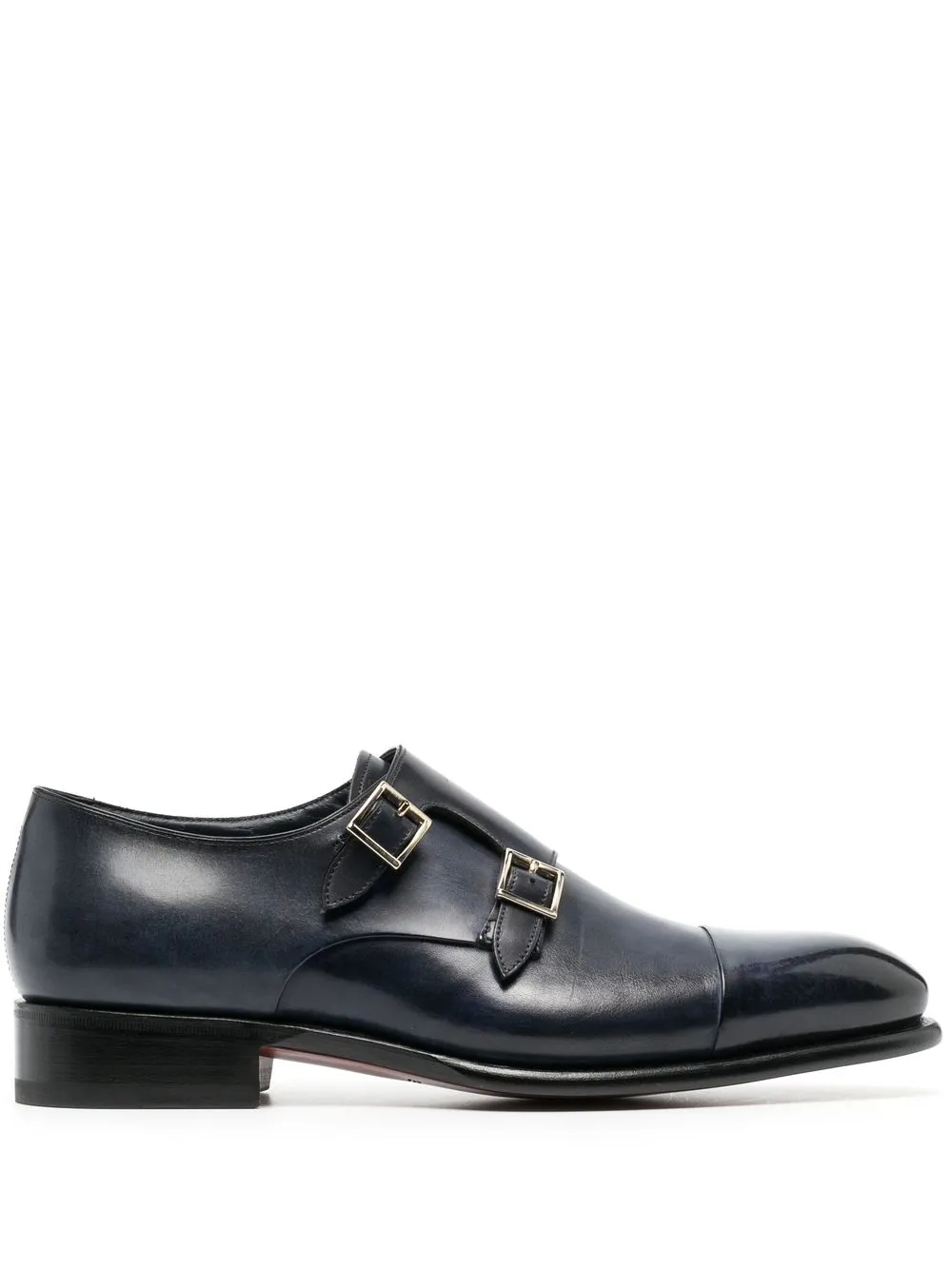 Zapatos monk en piel de becerro azules de Santoni.