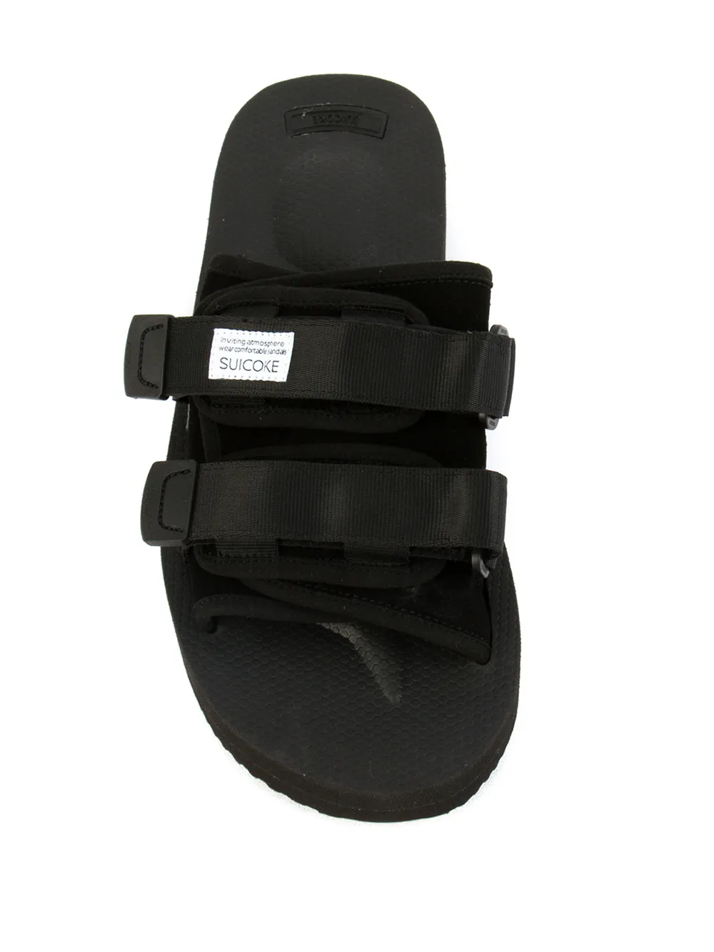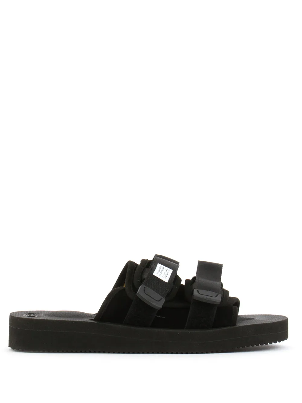 Sandalias Moto en piel artificial y pelo de becerro negras de Suicoke. Este artículo es unisex y se vende en talla de hombre.