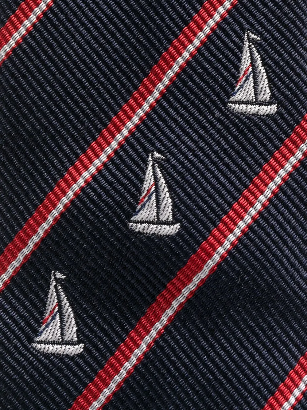 Azul marino, seda, motivo de rayas RWB, motivo de rayas diagonales y punta puntiaguda.