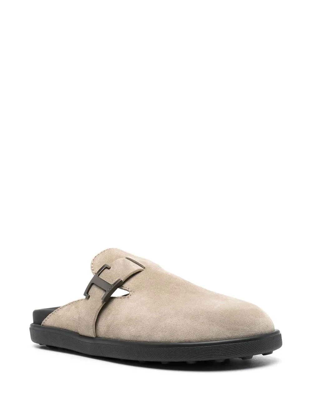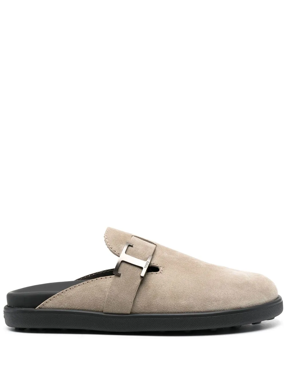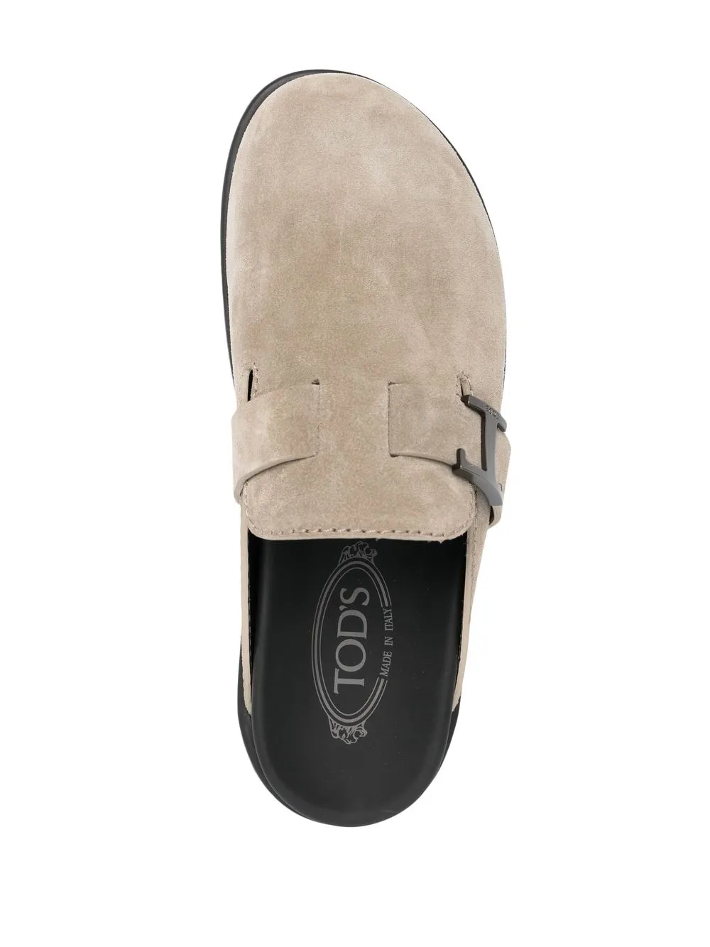 Beige, ante de becerro, puntera de almendra, placa del logo en tono plateado, plantilla con logo y suela plana.
