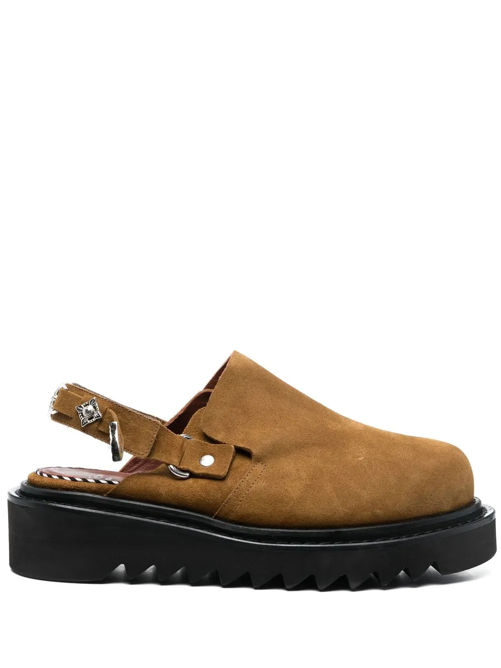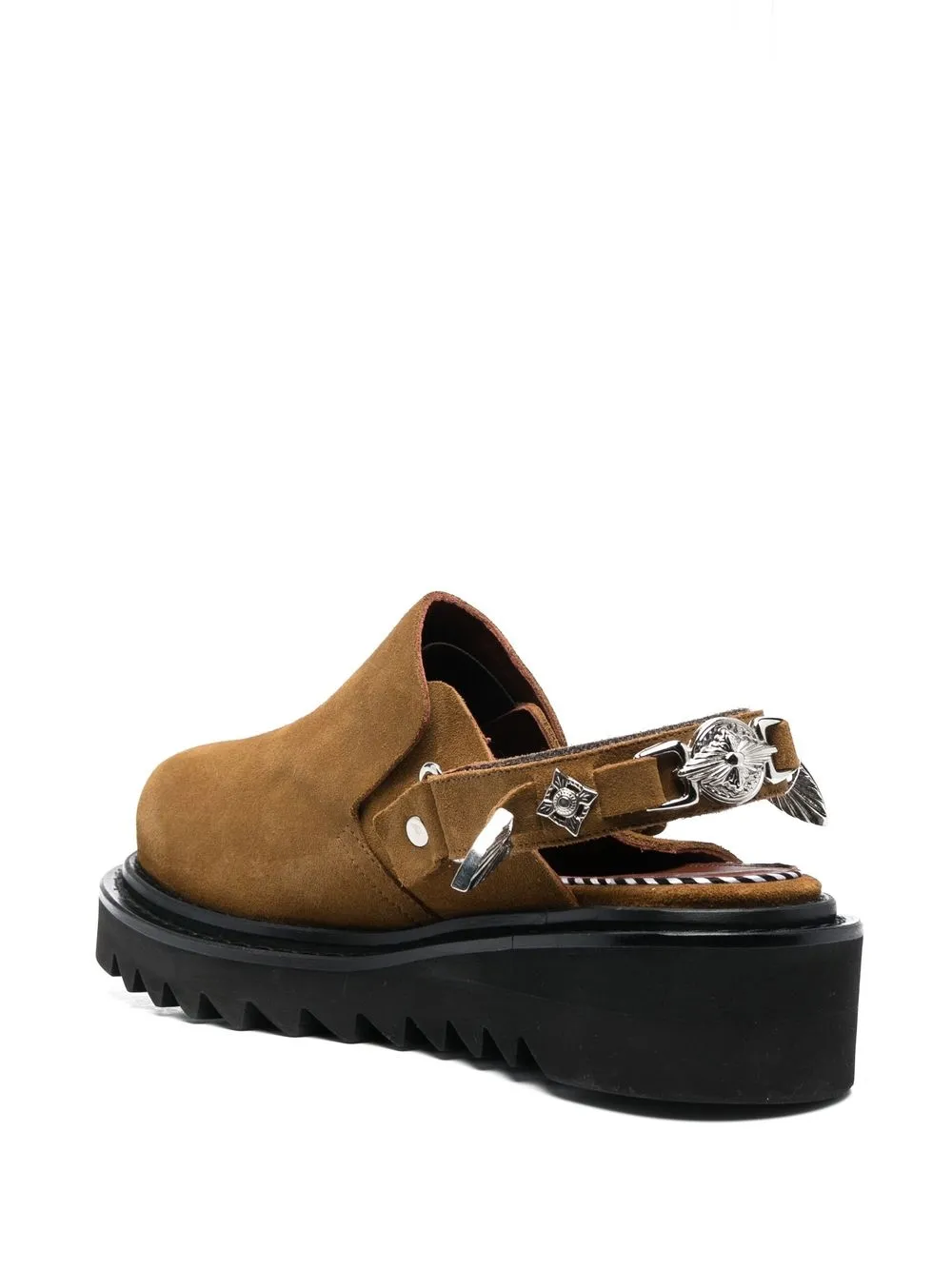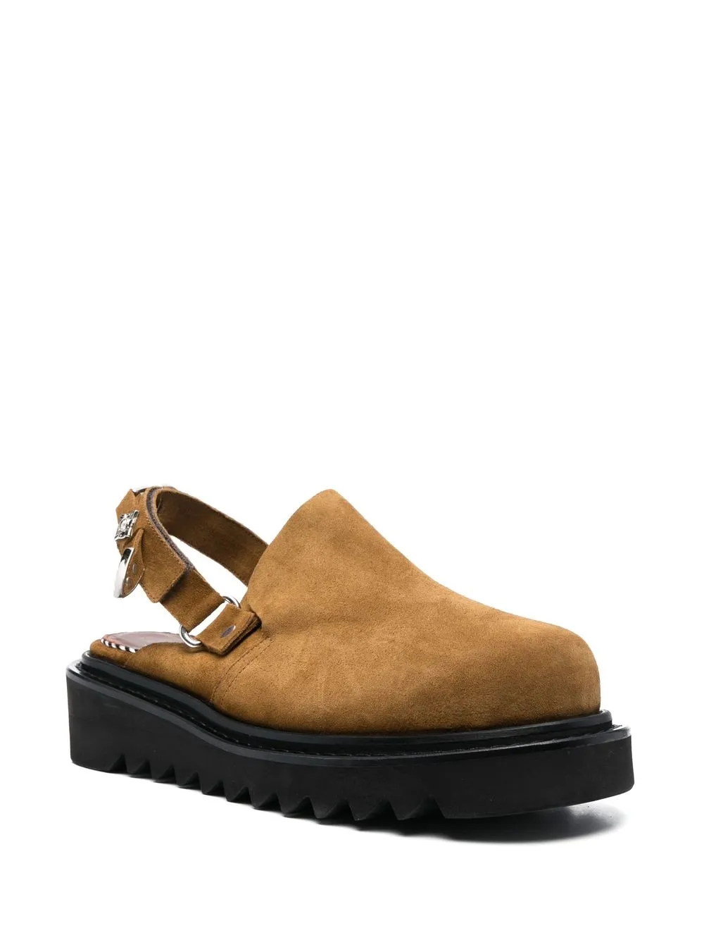 Caqui, piel de becerro, ante de becerro, detalle de hebilla decorativa, tira en el tobillo con hebilla, suela dentada de goma y plantilla con logo.