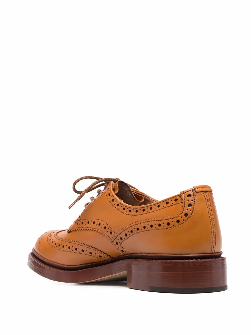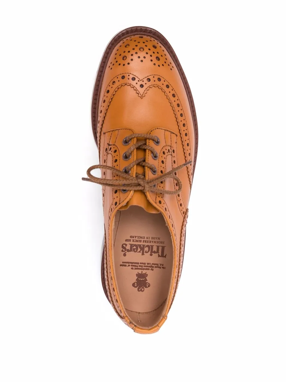 Detalle de perforaciones, puntera de almendra, cierre con cordones en la parte delantera, plantilla con logo y suela plana de goma. Material: cuero.