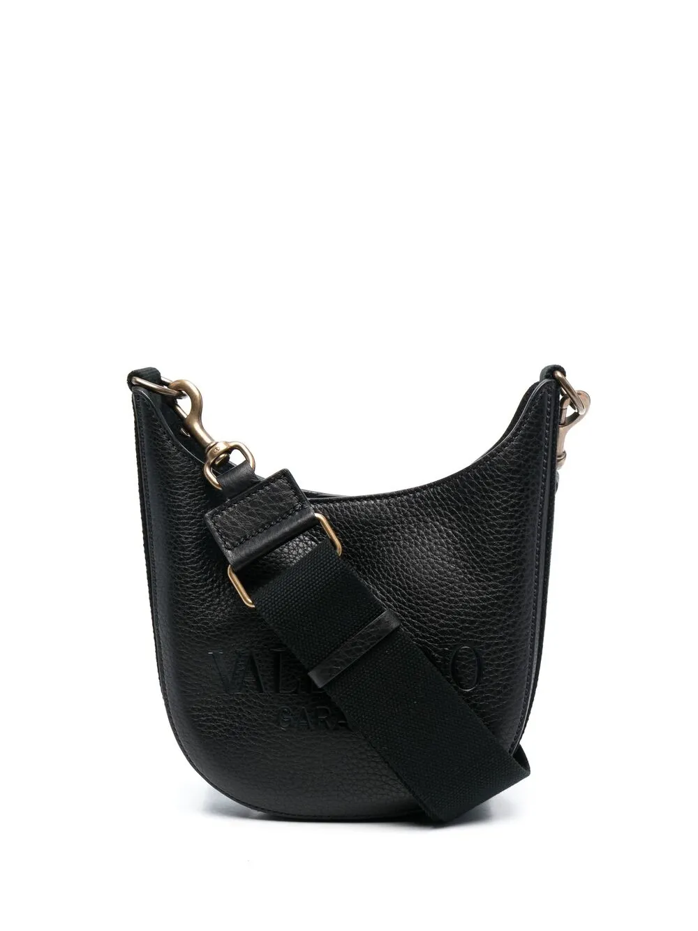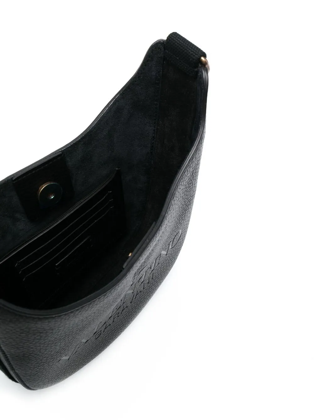 Logo grabado, textura granulada, acabado en tono dorado, correa ajustable y removible para el hombro, cierre magnético, compartimento principal y compartimentos internos para tarjetas. Material: cuero.