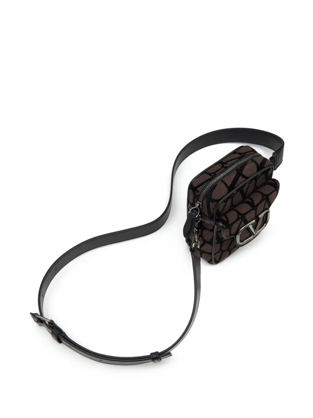 Marrón chocolate, ribete de cuero, detalle VLogo Signature, placa del logo en tono plateado, correa de hombro ajustable, bolsillo con solapa en la parte delantera, cierre con cremallera en el tope y compartimento principal.
