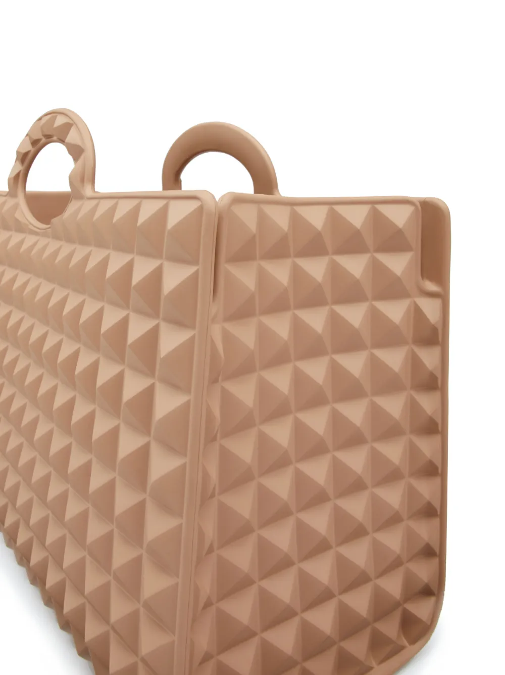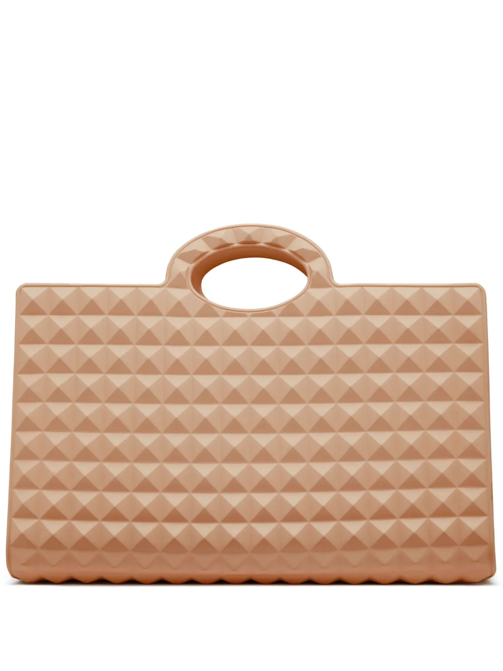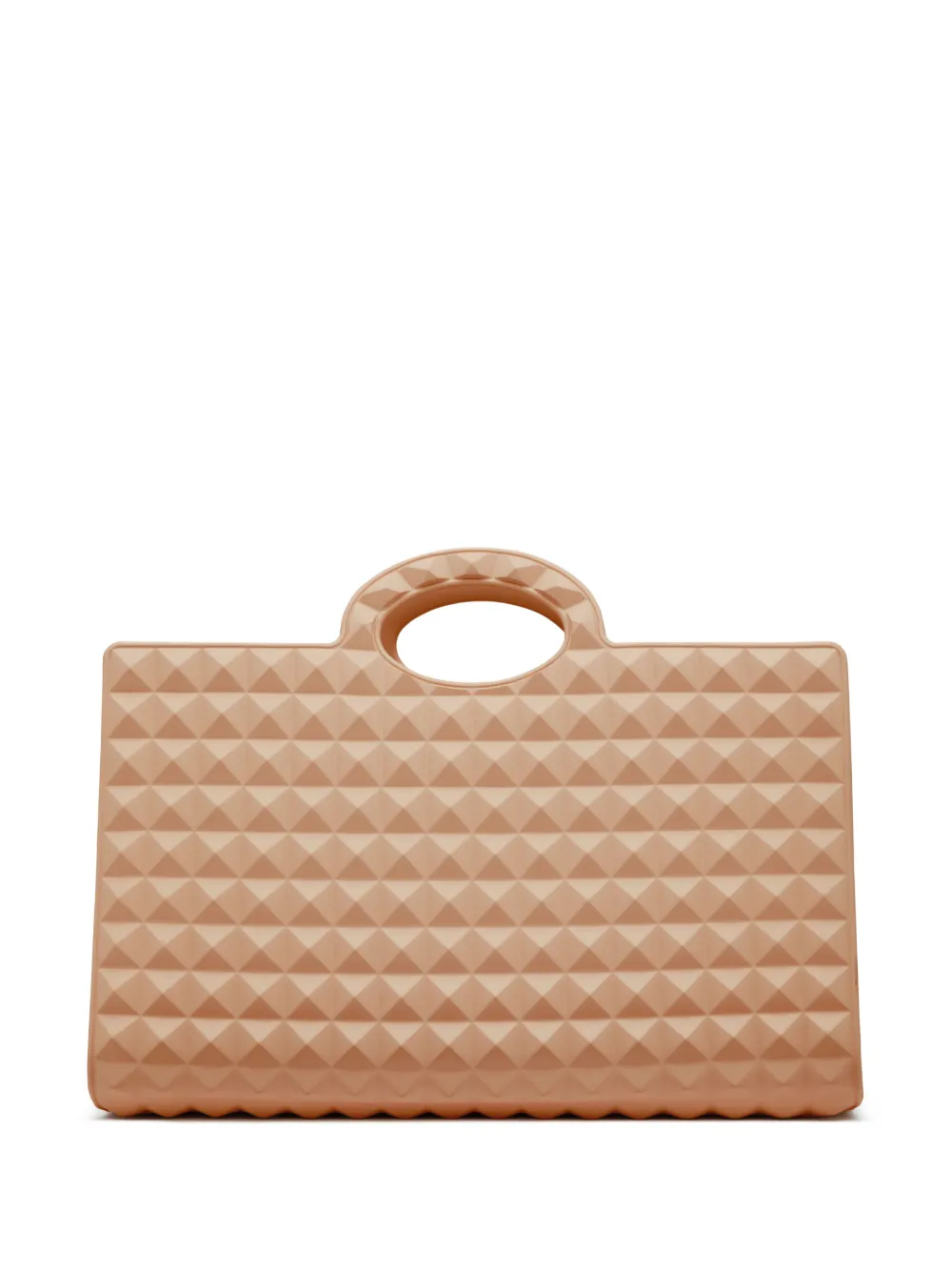 Beige arena, diseño de botón, dos asas en la parte superior, compartimento principal y diseño sin cierre.