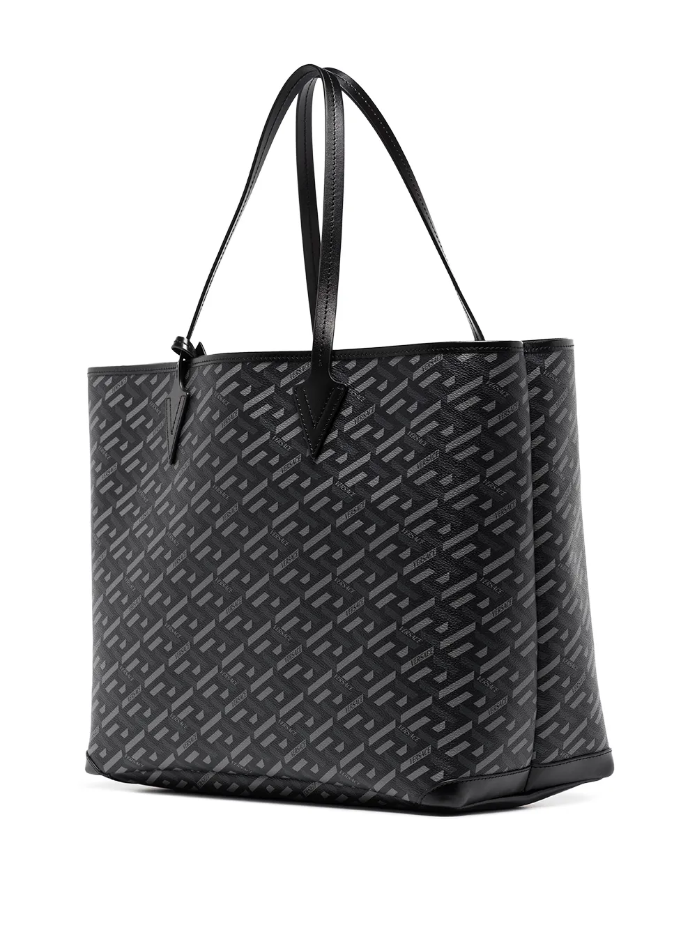 Estampado La Greca característico, parche del logo en la parte delantera, dos asas largas en la parte superior y bolsa removible. Material: cuero.