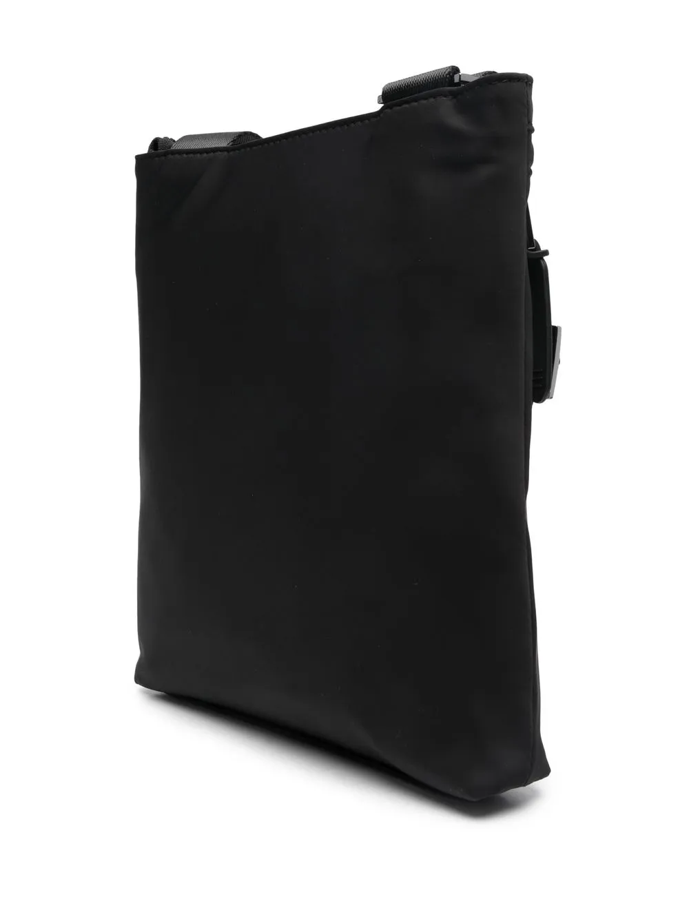 Negro, letras del logo, cierre con cremallera en el tope, asa para el hombro y bolsillo con cremallera en la parte delantera.