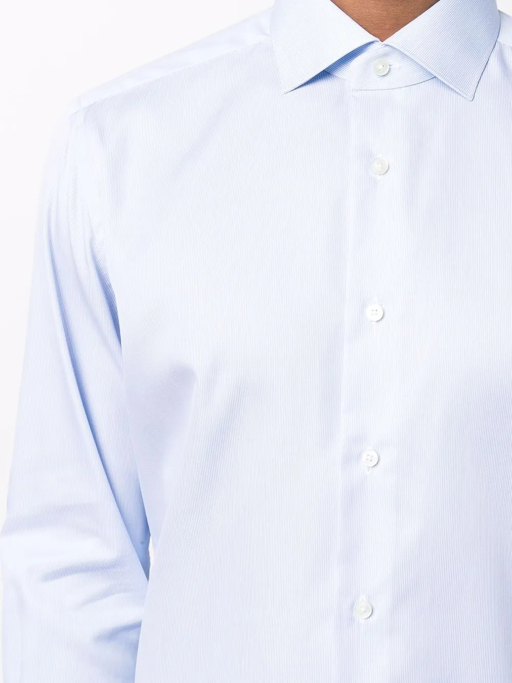 Diseño tonal, cuello clásico, cierre con botones en la parte delantera, manga larga, puños con botón y dobladillo recto. Material: algodón.
