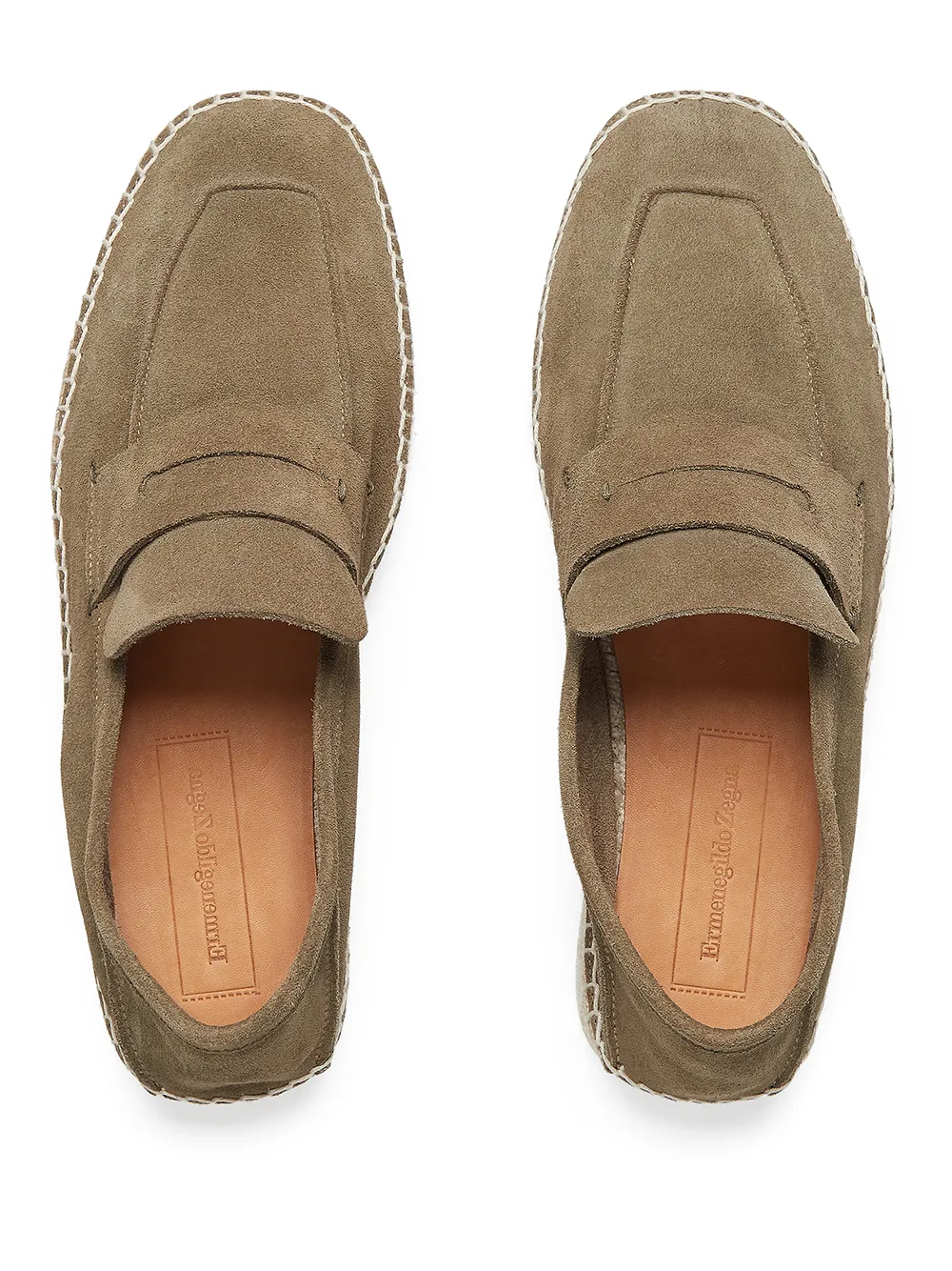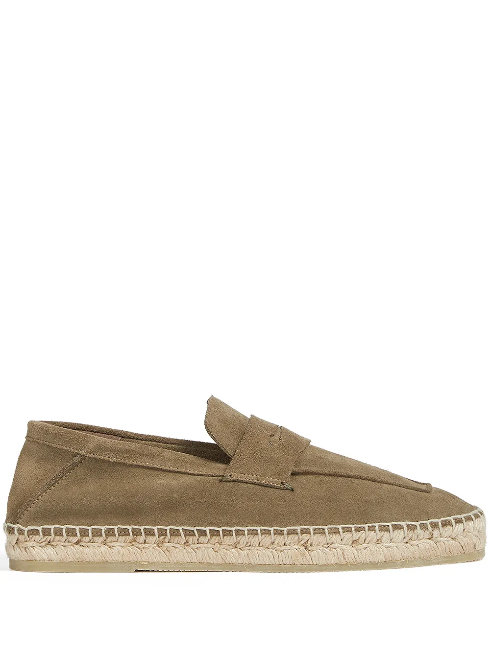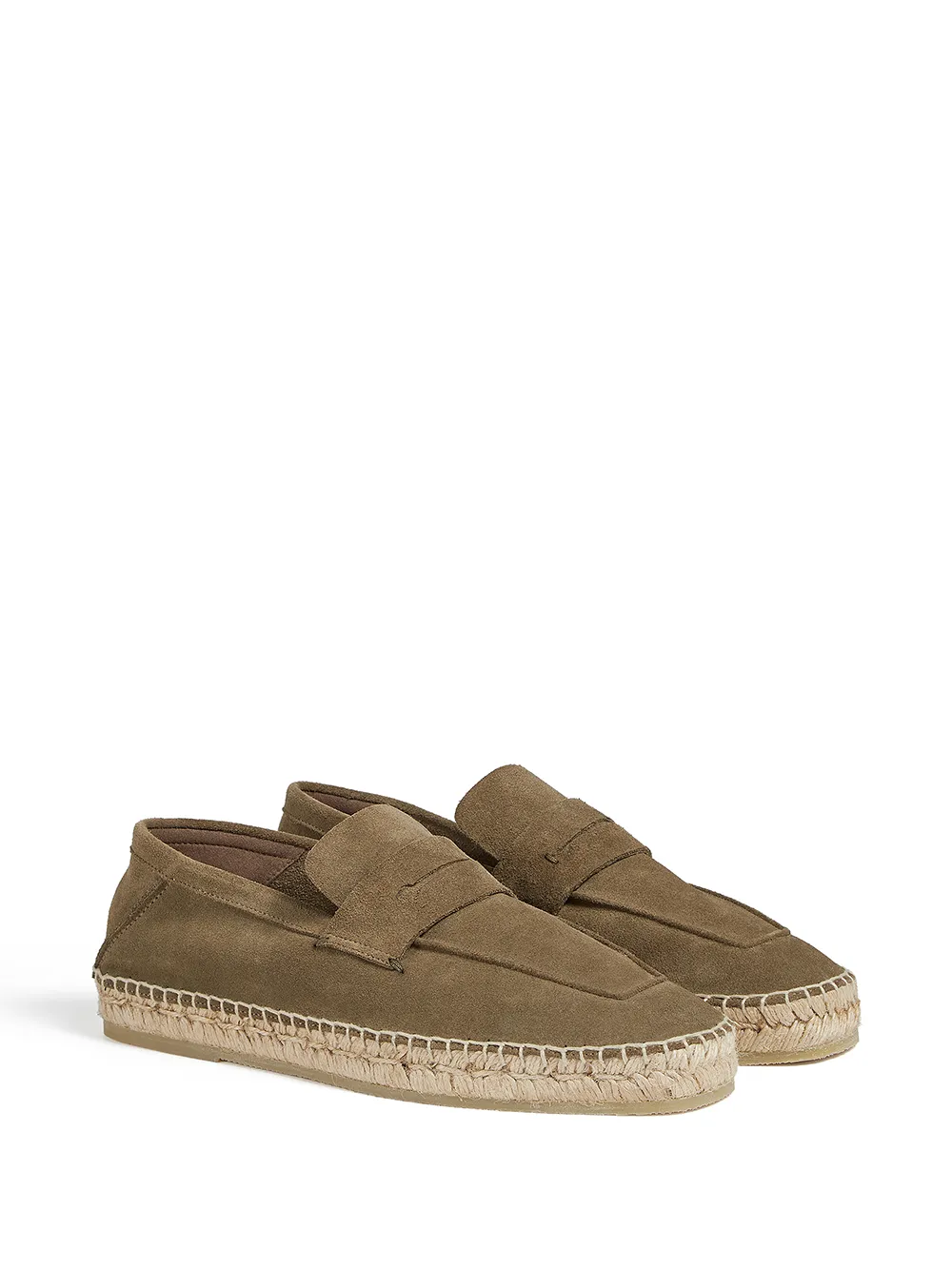 Forro de cuero, detalle penny, suela de yute y puntera de almendra. Material: ante.
